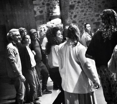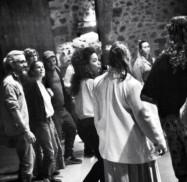 Sur scène, je chante dans plusieurs formations, ce qui nourrit mon énergie et mon inspiration pour transmettre la joie du chant collectif.