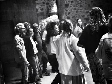 Sur scène, je chante dans plusieurs formations, ce qui nourrit mon énergie et mon inspiration pour transmettre la joie du chant collectif.
